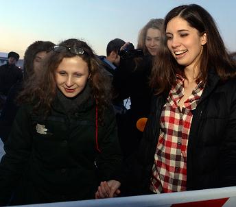 The two women were granted amnesty last week, in what was largely viewed as the Kremlin’s attempt to head off criticism of Russia’s human rights record ahead of the Winter Olympics in Sochi in February. Three band members were jailed after being found guilty of hooliganism motivated by religious hatred and sentenced to two years in prison for a performance at Moscow’s main cathedral in March 2012. Continue reading 23 December: Masha + Nadia Freed Within Hours of Each Other