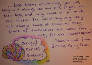 Hans in Luck. Drawing. 14/5/18Note 23/5/18: For anyone who is wondering, I feel stronger and better than ever. What is there to be scared of now for me? This week ten, what’s another few weeks? Sometimes this almost feels like a holiday, I just eat, sleep, kick back and read. I’ve got coffee, friends, all the time in the world to work on my art. I’m not free (yet) but I will be at some point. I have so many stories to tell, I can’t wait to share them. Don’t let anyone tell you that you can’t. Keep your head up and keep going! Love and Solidarity <3