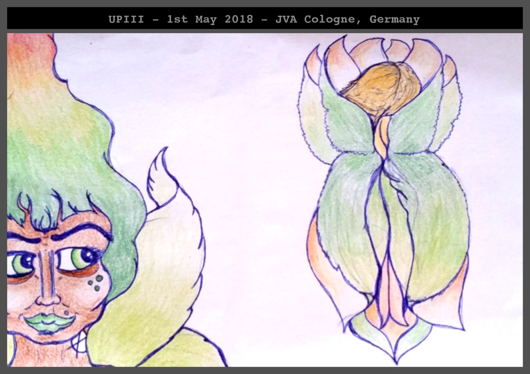Desk. Drawing. 30/6/18 – morning, 11:30amNote: This is the corner of my desk (closest to the door) right now. There’s three melons – water melon, honey melon and something that I’ve never seen before called “galianmelone” in German. Continue reading Letter #21 from UPIII