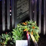 Mit allen Verbliebenen machten wir uns auf zum Antisemitismus-Denkmal in der Nähe der ehemaligen alten Synagoge. Zusammen sangen wir das Moorsoldaten-Lied und legten anschließend eine Gedenktafel und Rosen nieder. Nach einer Gedenkminute und dem Versprechen, dazu beizutragen, dass Deutschland nie wieder faschistisch werde und das so Etwas oder Ähnliches nie wieder geschehe, verließen wir den Ort des Geschehens.