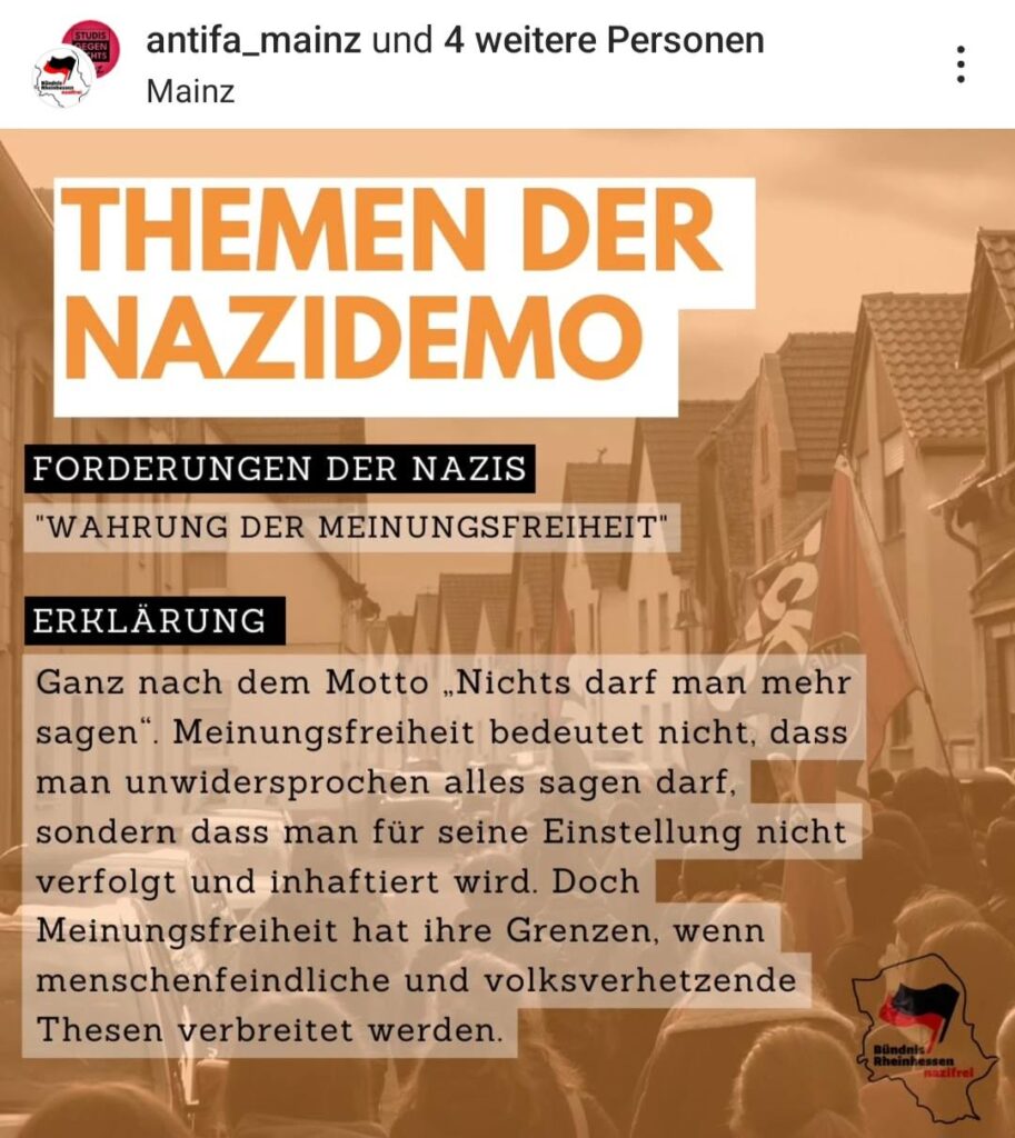 Mehrere Antifa- Gruppen haben eine kurze Einordnung der angekündigten Demonstration in Mainz vorgenommen: