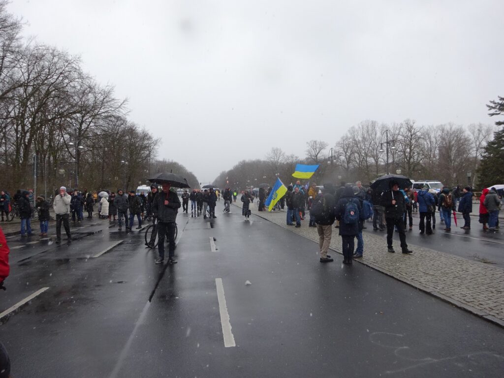 Zu Beginn das Wichtigste: Von den über 400.000 Unterzeichner*innen von Sarahs und Alices Friede-Freude-Eierkuchen-Manifest ist kaum wer gekommen. Die Demo reichte vom Brandenburger Tor gerade mal mit gutem Willen bis knapp vor die Panzer vom Sowjetischen Ehrenmal.