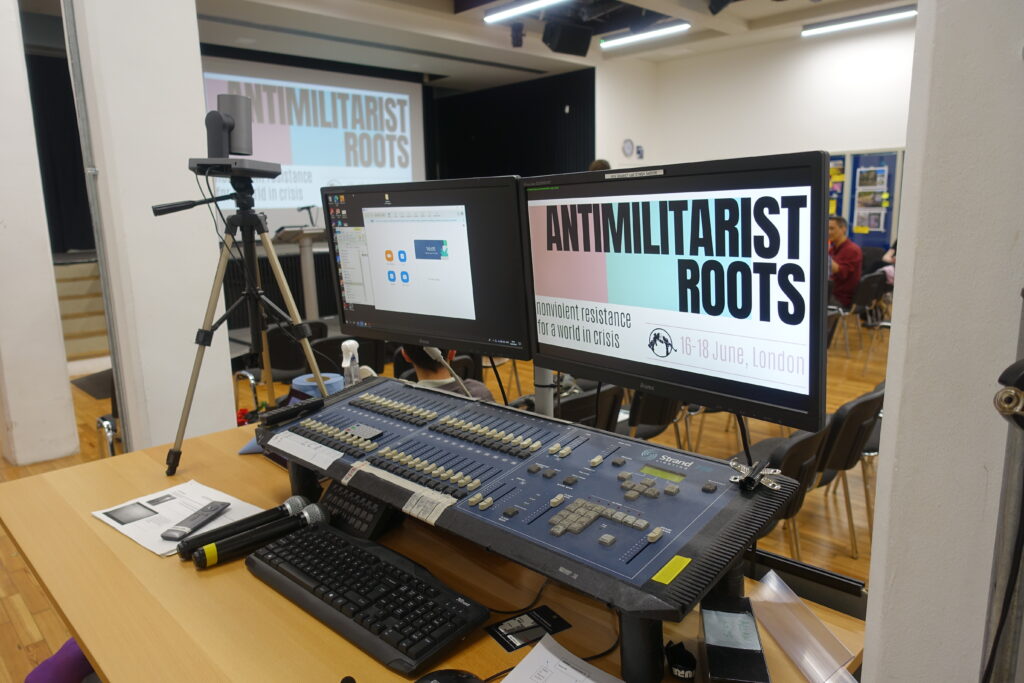 Sonntag, 18. Juni. Unser vierter Tag in London, der Kongress „Antimilitarist Roots“ von War Resisters International (WRI) geht zu Ende. Wir lernen Dinge über Rekrutierung in Eritrea und der Türkei und über sinnvolle Zwischenziele bei Kampagnen. Und wir schreiben uns selber Postkarten.