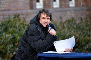Adam Golkontt, katholischer Sprecher der „Christen in der AfD“, spricht am 18.12 vor dem Landtag in Hannover. Bildquelle: recherche-nord