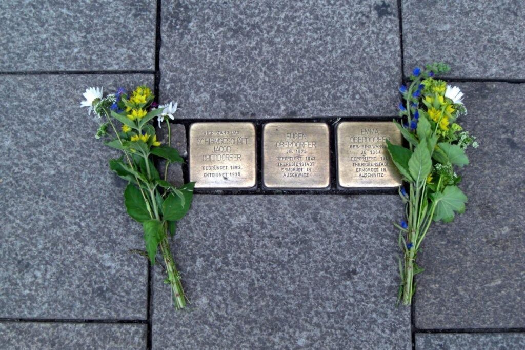 Am 9.6.23 trafen wir uns gemeinsam mit etwa einem Dutzend Menschen in der Maxstraße, um 8 Stolperstein-Stationen in der Innenstadt abzulaufen und uns gemeinsam an den Holocaust zu erinnern.