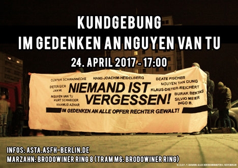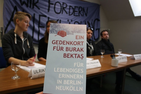 Außerdem rufen wir euch auf, die Petition des VVN-BDA für einen Berliner NSU-Untersuchungsausschuß zu unterzeichnen. Seit den Enthüllungen, das (inzwischen) 4 bundesweit führende Nazis aus dem direkten Umfeld des NSU vom LKA Berlin angeworben wurden, ist es dringend nötig, dieses genauer und auch parlamentarisch zu untersuchen. Das LKA Berlin, das u.a. den bundesdeutschen “Chef” des Nazi-Netzwerks Blood & Honour und den Lieferanten des Sprengstoffs für den NSU als V-Mann geführt hat, soll den Mord an Burak aufklären?!