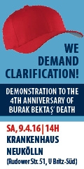 Webbanner zu Burak’s 4. Todestag und der Demonstration am 9. April 2016