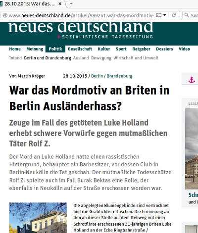 Vor kurzem wurde ebenfalls in Neukölln der Brite Luke H. erschossen. Der daraufhin verhaftete Rolf Z., auf den auch die Beschreibung von Buraks Mörder passt, tauchte nach Recherchen der Anwälte auch in den Akten von Burak auf. Aber den Hinweisen auf ihn wurde nicht nachgegangen, er wurde nicht einmal vorgeladen. Mittlerweile haben Nachbarn auf NS-Devotionalien in der Wohnung von Rolf Z. hingewiesen. Außerdem hat ein Zeuge ausgesagt, dass sich Rolf Z. kurz vor der Tat in einem Nachtclub darüber beschwerte, dass kein Deutsch gesprochen wurde. All dies hat die Polizei gegenüber der Öffentlichkeit nicht erwähnt, sondern kam durch unabhängige Nachforschungen zutage.