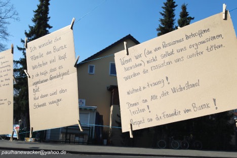 Wir, die Kölner “Initiative Keupstraße ist überall” haben einige Gemeinsamkeiten mit der Burak-Initiative. Wir haben uns 2013 gegründet, nachdem die Neo-Nazi-Terrorgruppe NSU sich selbst enttarnte, die auch für den Bombenanschlag in der Kölner Keupstraße im Juni 2004 und in der Kölner Probsteigasse 2001 verantwortlich war.