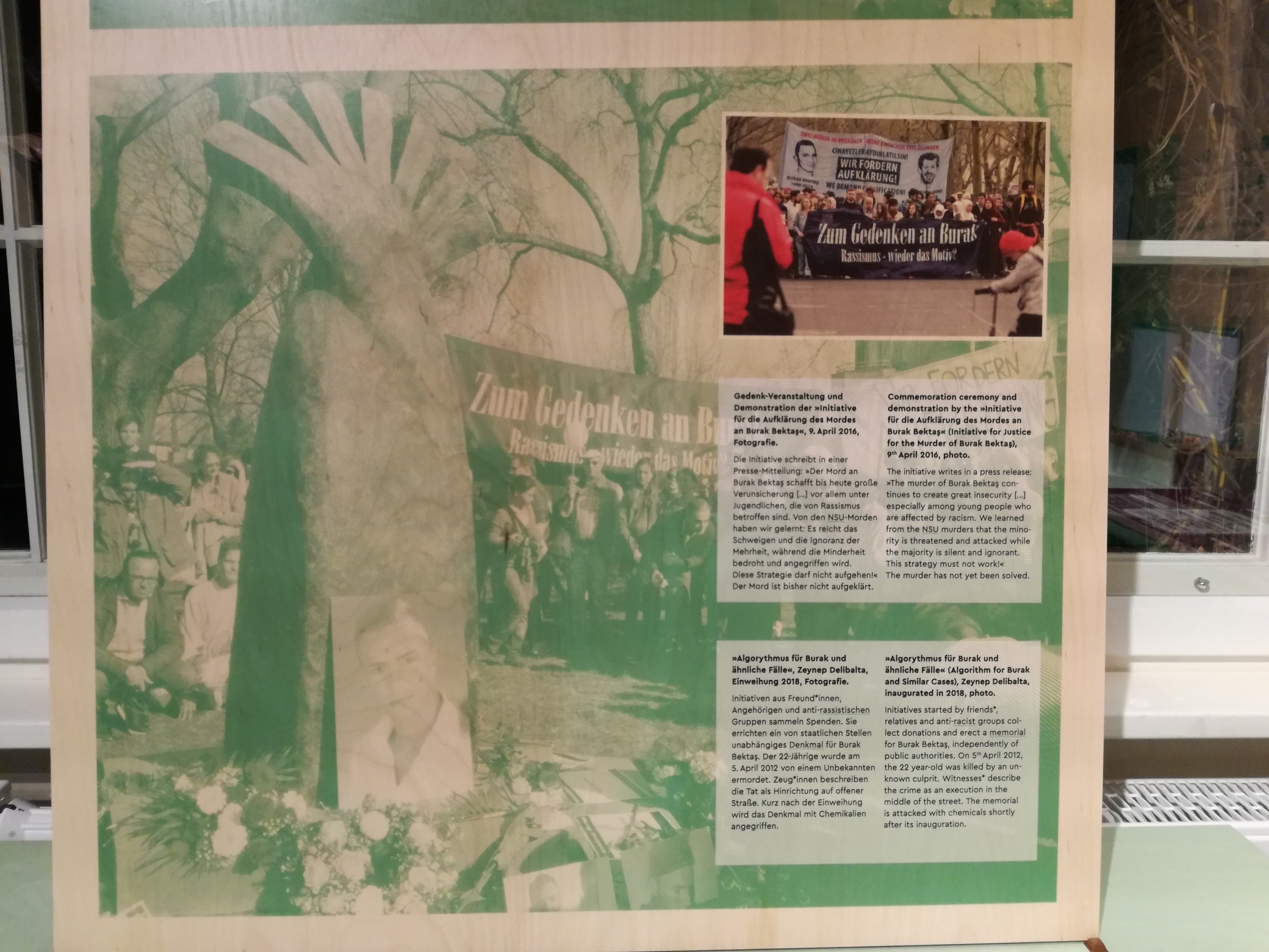 Diese beiden Initiativen werden als aktuelle Formen des Gedenkens vorgestellt und die Leiterin des Anne-Frank-Zentrums Berlin geht, genauso wie wir, von einem rassistischen Mord an Burak Bektaş aus.