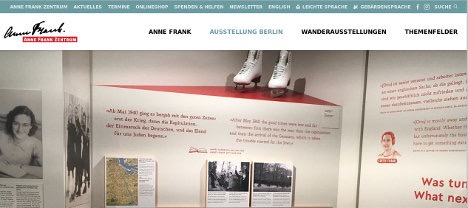 Die Ausstellung im Anne-Frank-Zentrum Berlin “Alles über Anne” am Hackeschen Markt in der Rosenthaler Straße 39 schlägt, laut RBB (Rundfunk Berlin-Brandenburg), den Bogen vom Leben Anne Frank, ihrem Tagebuch, dem Antisemitismus in Deutschland in die Gegenwart und berichtet über aktuelle Gedenkinitiativen: