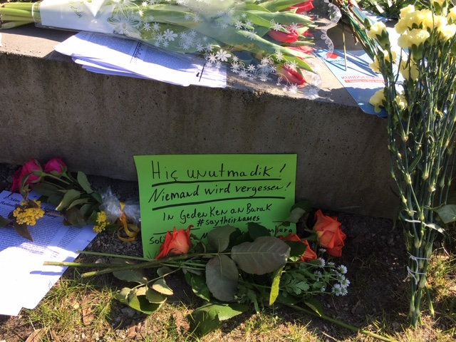 Wir sind heute am Gedenkort für Burak zusammen gekommen, um am Jahrestag der Befreiung vom Faschismus auf den weiterhin unaufgeklärten Mord an Burak aufmerksam zu machen. Unsere Kundgebung ist Teil der dezentralen Aktionen zum antirassistischen Aktionstag 8.5.2020 in Berlin: Rassismus tötet von Moria bis Hanau – Kein Vergeben, kein Vergessen