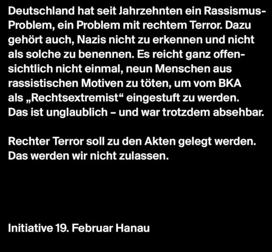Am 5. April 2012 wurde der 22jährige Burak Bektaş, der mit einer Gruppe von Freunden unterwegs war, Ziel eines Täters bzw. Tätern. Der Täter/Die Täter näherten sich der Gruppe und schossen erbarmungslos. Burak Bektaş überlebte diesen Angriff nicht, bei dem zwei Personen schwer verletzt wurden. Burak Bektaş war gerade mal 22 Jahre alt. Der/die Täter konnten immer noch nicht gefasst werden. Sie sind unter uns. Wer wird wohl das nächste Opfer? Die Familie von Burak behauptet, dass nicht genügend ermittelt wurde, schon gar nicht in Richtung Rassismus. Ich begrüße diese Behauptung vom Herzen. Dieses Beispiel haben wir auch bei den Morden in Hanau gesehen. In Hanau hieß es, dass es ein psychisch Kranker war, der alleine handelte, dass Rassismus keine Rolle spielte. Kann ein psychisch Kranker kein Nazi sein? Müssen diese Mörder ein Hakenkreuz am Hals tragen, damit wir sie als Nazis identifizieren? Wer von uns wird wohl als nächstes Opfer von Rassisten?