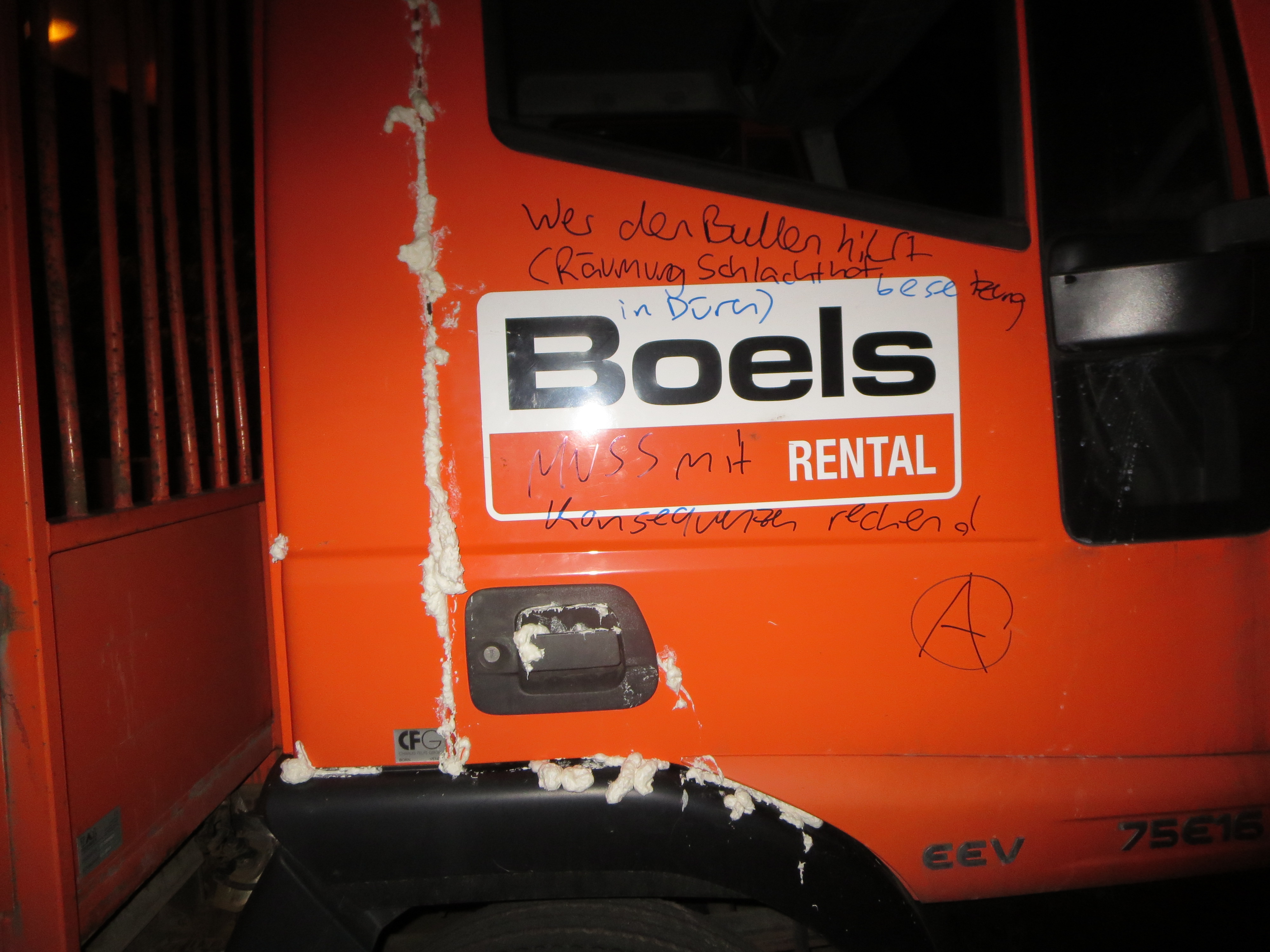 Wir haben in der Nacht vom 6.5.19 auf den 7.5.19 einige Fahrzeuge der Firma Boels in Böblingen sabotiert. Wir haben einige Türen und Hebel mit Bauschaum verklebt und zusätzlich diverse Kabel durchgeschnitten.