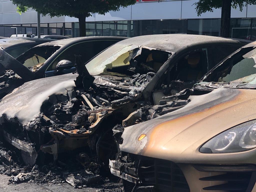 Auf dem Gelände eines Autohändlers in Köln sind in der Nacht zu Montag (17.06.2019) vier Porsches in Flammen aufgegangen. Die Polizei geht von Brandstiftung aus.