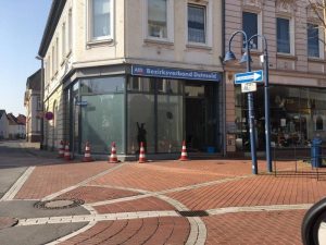 Es ist wahrscheinlich in den Morgenstunden zum Freitag passiert: Ein oder mehrere Täter haben die Scheiben zum Bezirksbüro der Alternative für Deutschland an der Ecke Lange Straße/Bruchstraße eingeworfen.