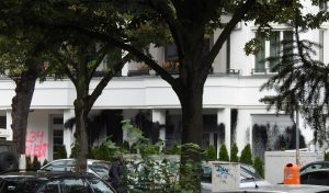Ein Haus im beschaulichen Schmargendorf (Charlottenburg) in der Charlottenbrunner Str. 5 hat in der letzten Nacht Besuch bekommen. Hier wohnt Louis Clark Weizmann, ein Emporkömmling der Padovicz Unternehemensgruppe. Mit einem Farblöscher und dem Spruch „Liebig34 bleibt“ haben wir an seine Verantwortung für die Räumung der L34 erinnert und seinen Vorgarten zerstört.
