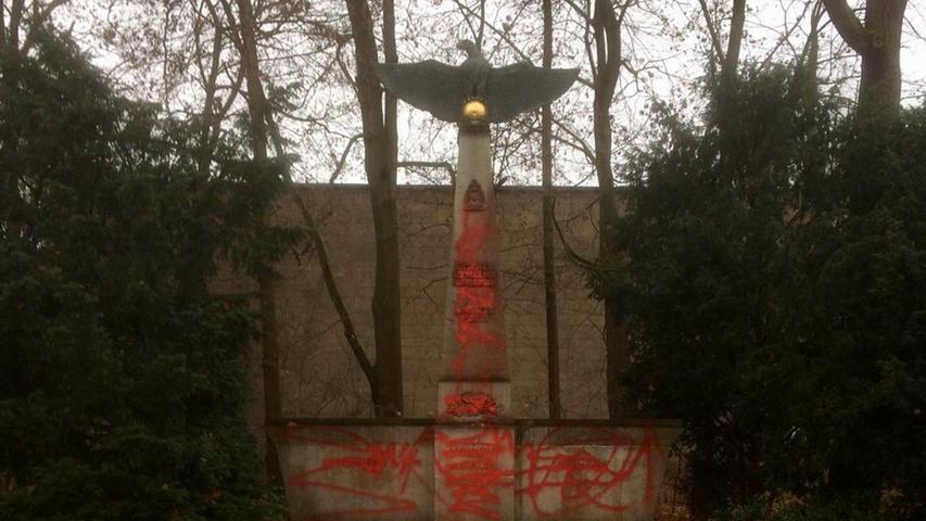 Farbanschlag auf Kriegerdenkmal im Luitpoldhein in Nürnberg