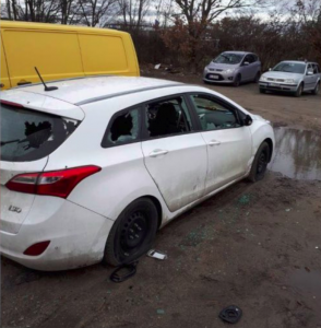 Unbekannte werfen einen Gegenstand auf die Windschutzscheibe eines Pkw und zerstechen alle vier Reifen.