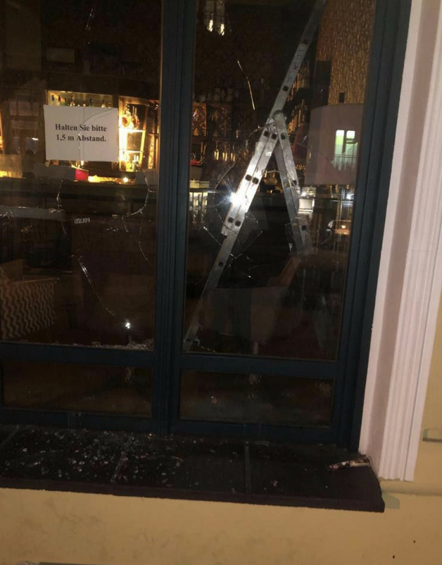 Die Bar „ScotchAndSofa“ in PrenzlauerBerg hat ihre Scheiben verloren. Verschwörungsideolog:innen trauern um ihre Lieblings-Bar. #b2503