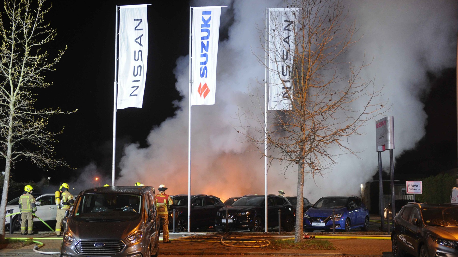 Erst brannten drei Fahrzeuge, das Feuer griff dann auf weitere Fahrzeuge über. Insgesamt wurden 20 abgestellte Pkw beschädigt, sieben Autos brannten vollständig aus.