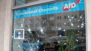 „Iniziò in modo inoffensivo“, dice il 51enne. Dapprima ci furono degli sputi alle finesrte. Poi autocollanti con segni del movimento antifa di sinistra alla facciata dell’ufficio della AfD conservatrice di destra, seguiti da autocollanti con le parole „Refugees welcome, nazi fuori“, dice Hütter. Una settimana fa, i vetri furono imbrattati con dello smalto, come conferma la polizia. Con delle scritte spray tipo „Chemnitz è multicolore“. Alfine, nella notte a giovedì volarono le pietre. Sarebbero stati 25 piccoli sampietrini di granito. I vetri delle finestre subirono dei danni ma senza essere sfondanti. Hütter stima il danno sui 3000 euro e teme che l’assicurazione disdics il contratto. In tutta la Sassonia, la AfD è il partito le cui sedi subiscono il maggior numero d’attachi. Dove andrebbero a pezzi i vetri sarebbe stato versato dell’acido butirrico. „Temo che sarebbe sucesso anche nell’ufficio di Chemnitz se le finestre si sarebbero rotte“, dice Hütter. Ecco perchè alle porte e alle finestre si metterà ora del vetro più resistente e rafforzato con una pellicola di plastica.
