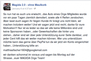 Anfang des Jahres hat es in Magdeburg das Auto eines Organisatoren der Magida-Aufmärsche erwischt. Es wurden die Reifen zerstochen und offenbar auch die Scheiben eingeschlagen.