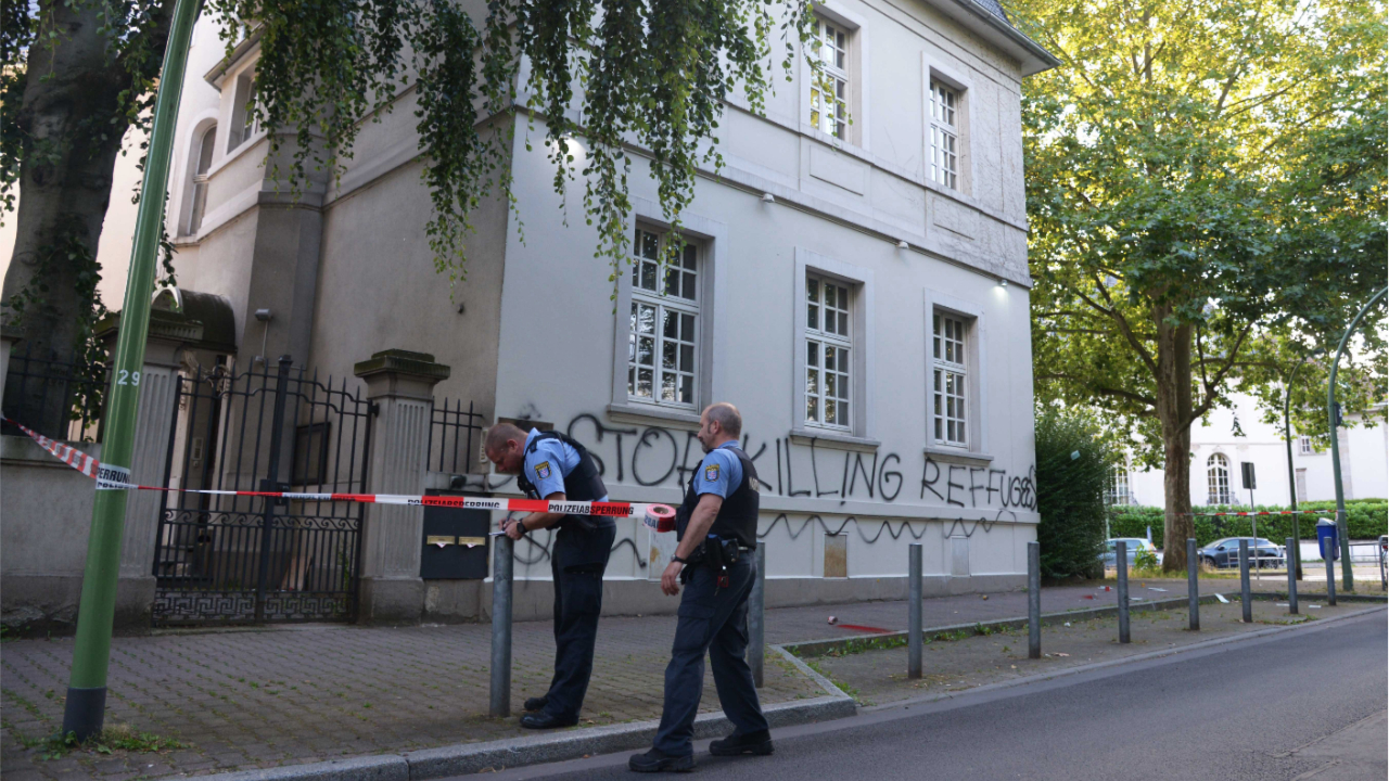 Unbekannte haben das griechische Generalkonsulat in Frankfurt attackiert. Es seien am Montagabend Feuerwerkskörper gezündet und der Schriftzug „Stop Killing Refugees” („Hört auf, Flüchtlinge zu töten”) mit einem Schreibfehler auf die Fassade des Gebäudes im Stadtteil Bockenheim gesprüht worden, sagte eine Sprecherin der Polizei in Frankfurt und bestätigte damit Medienberichte.