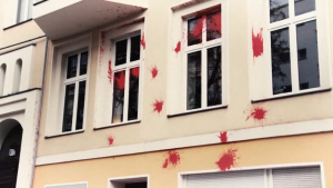 Am Jahrestag des EU-Türkei-Deals zur Abschottung der Griechenlandroute gegen Flüchtlinge haben mehrere dutzend Aktivist*innen im Rahmen des europaweiten Aktionstages gegen Rassismus und die Festung Europa das Berliner Büro der European Stability Initiative (ESI) in Kreuzberg besucht. Dabei klebten sie Outing-Plakate und hinterließen Blutspritzer. Dem Thinktank mit Büros in Berlin, Wien und Istanbul werfen die AktivistInnen vor, das Konzept für den EU-Erdogan-Deal entwickelt zu haben und damit für die „tödliche Abschottung Europas“ sowie die „ deutsche Unterstützung des Erdogan-Regimes und seines Krieges gegen Demokratie und Menschenrechte“ mit verantwortlich zu sein.