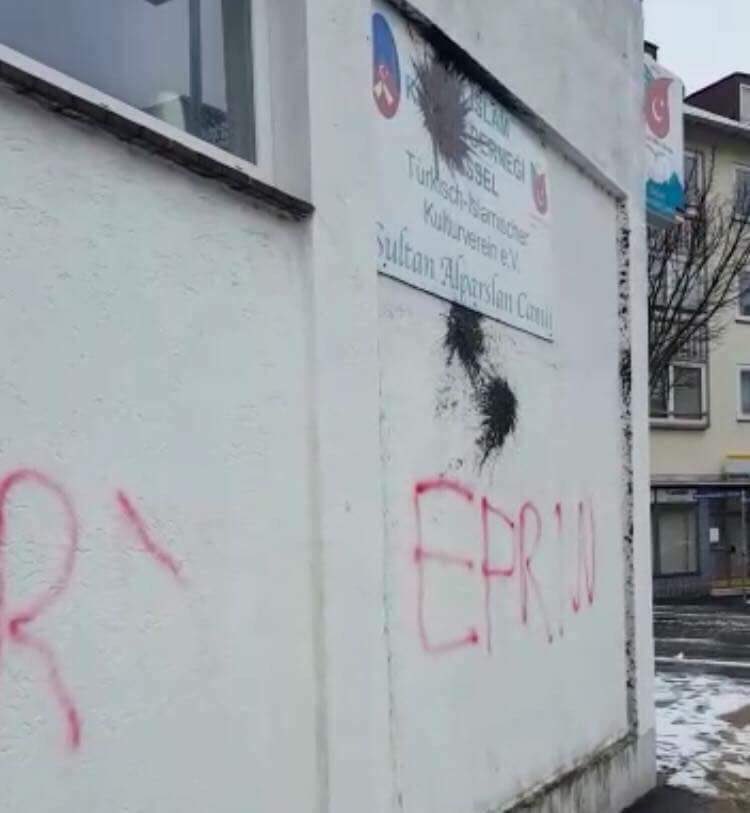 Gleich in der ersten Nacht nach dem Beginn des türkischen Besatzungsversuchs führte ein Rachekommando eine Aktion gegen die, der faschistischen Partei der nationalistischen Bewegung MHP zugehörige Sultan Alparslan Moschee, in Kassel durch. An der Wand wurde der Schriftzug “Efrîn” hinterlassen, sowie das Gebäude großflächig mit Farbbomben verschmutz. Der Schaden wird auf 2000 Euro geschätzt. Ein kurzes Bekennerschreiben erschien auf Rojaciwan.eu