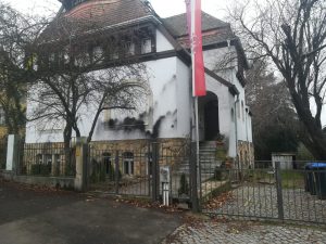 das objekt in der bernhard straße 98 dient als treff und veranstaltungsort für die identitäre bewegung und andere widerlinge. nun heißt es für die burschis bitumen vom haus kratzen.