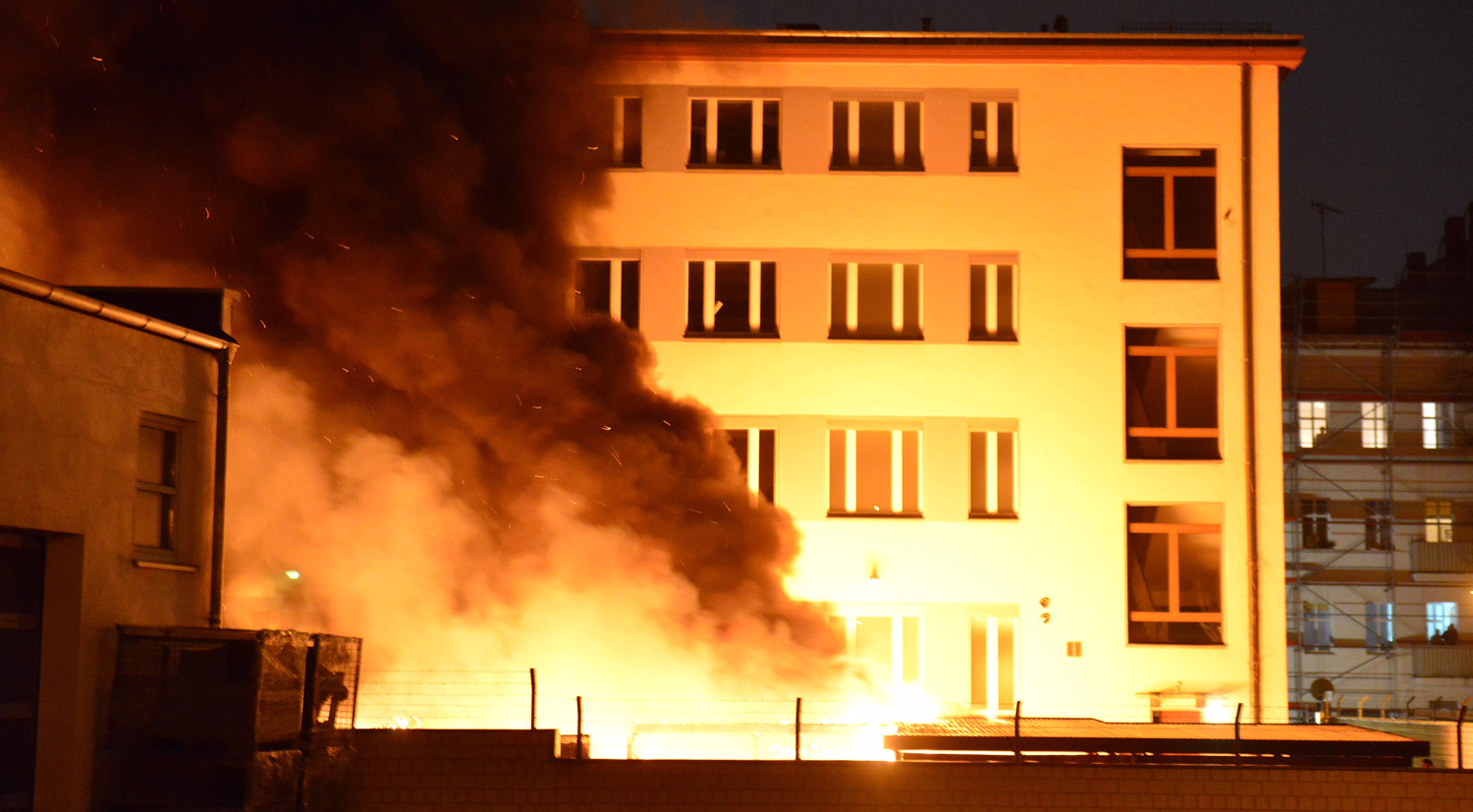 Neun Fahrzeuge des Neuköllner Ordnungsamtes sind in der Nacht zu Montag in Flammen aufgegangen. Eine große schwarze Rauchsäule stieg über der Juliusstraße in den Himmel.