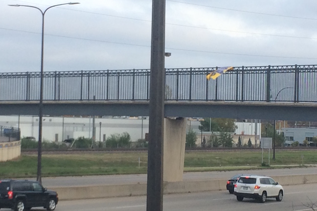 While Hennepin County Sheriffs and other agents of law enforcement moved in on the Standing Rock camp in North Dakota, a banner was dropped in Minneapolis that read “AGAINST THE DAPL AND ITS WORLD (A)”