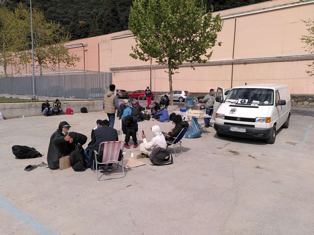 Since we landed in Ventimiglia the Distribution Point has become a regular place to visit for us. A part of our group stays there every day from noon to dawn with our Info and Medi bus.