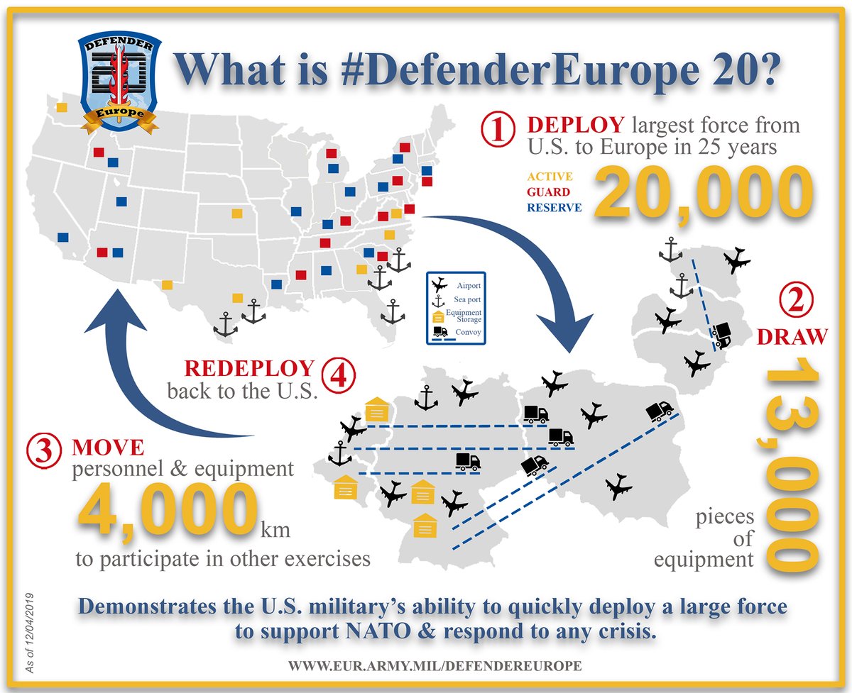 Eine ganze Division US-Soldaten (Mannschaftsstärke circa 20 bis 25.000) und deren Material sollen aus den USA transportiert werden. Insgesamt werden wohl bis zu 40.000 Soldaten an dem Manöver beteiligt sein. Anfangs war die Rede davon, dass zehn Länder an der Übung beteiligt sein sollen, zwischenzeitlich wird von 15 NATO-Ländern und zwei Partnernationen berichtet. Die Verlegung der Truppen durch Deutschland und damit auch die Einbeziehung von Bundeswehrstandorten wird schwerpunktmäßig von April bis Mai 2020 stattfinden.