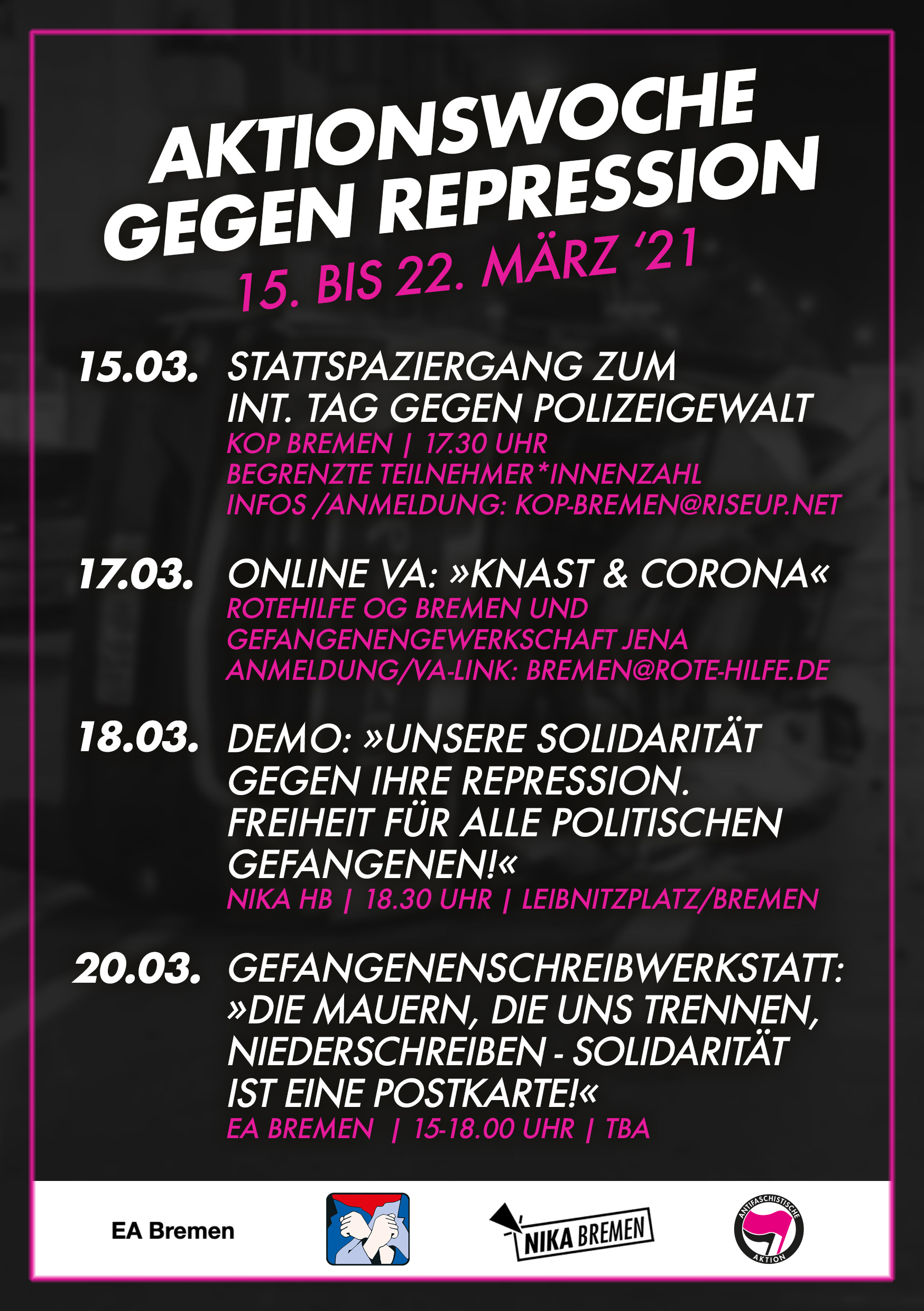Ankündigung: Aktionswoche gegen Repression 15. – 21.03.21