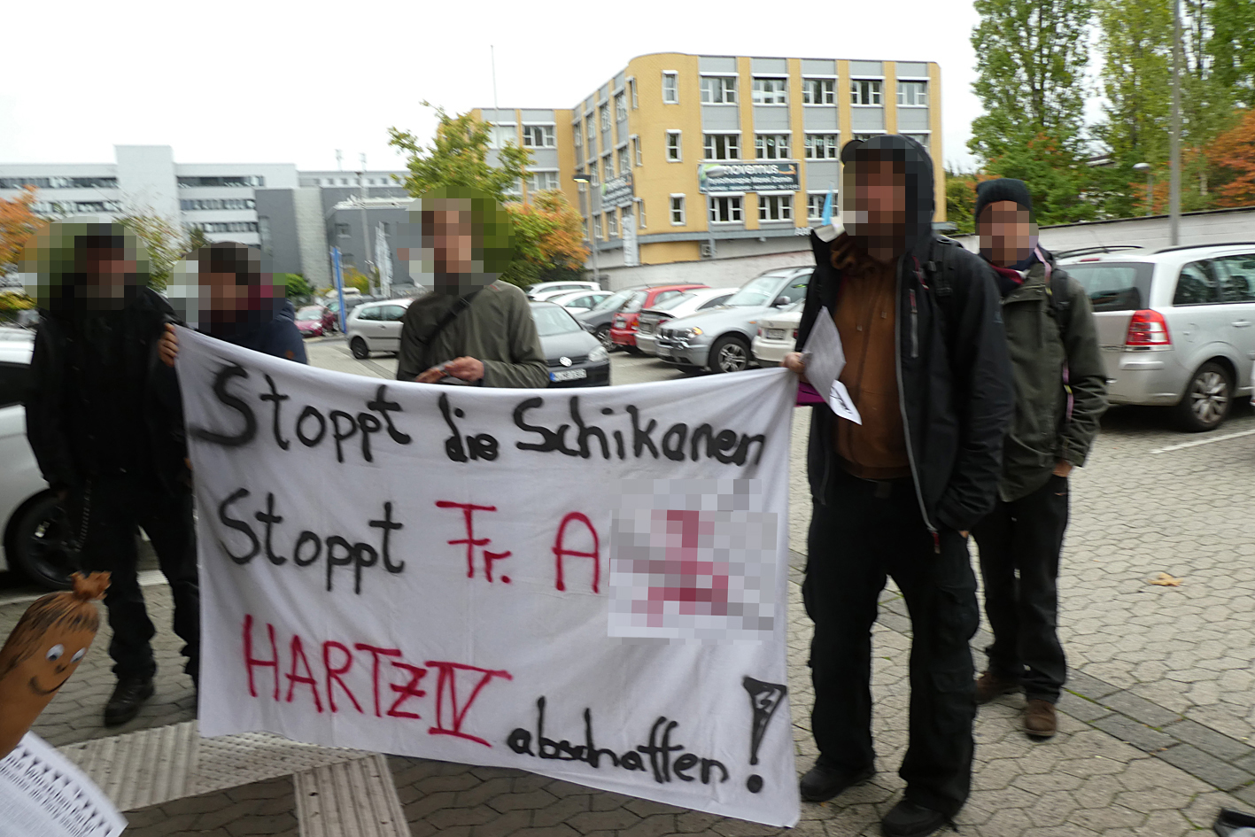 Auch wenn rechtlich darüber gestritten werden könnte, ob es sich bei leitenden Mitarbeiter*innen des Jobcenters nicht um Personen des öffentlichen Lebens handelt, so wurden die Bilder zunächst von uns vom Netz genommen und sind nun verpixelt.