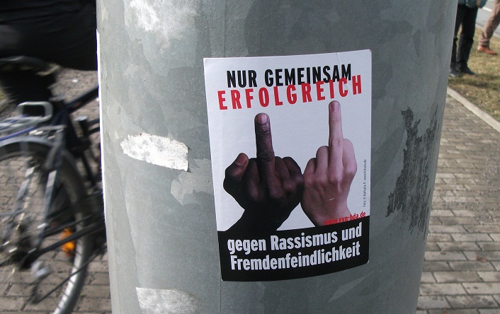 Ein po­li­ti­scher Um­schwung steht der rechts­ra­di­ka­len Par­tei sich bevor. Ex­per­ten schät­zen, dass ein NPD-​Ver­bots­ver­fah­ren in etwa drei Jah­ren be­en­de­te sein könn­te. Viel Zeit bleibt den Na­tio­na­len Zel­len­tei­lern also nicht mehr, wenn sie sich wei­ter „kom­mu­nal ver­an­kern“ wol­len, wie es heißt. Bild: Auf­kle­ber der VVN-​BdA, die seit Jah­ren mit ihrer Kam­pa­gne „No NPD“ für Ver­bot der NPD wirbt. Mehr Infos unter: http://ino.blogsport.de