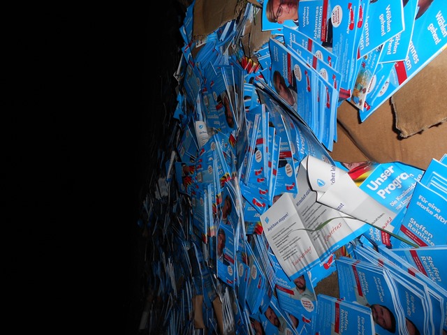 Um ihnen den Wahlkampf noch mehr zu versüßen, haben wir 15 Kartons mit Flyern entführt, insgesamt 75.000 Stück. Hierbei handelte es sich um Auszüge aus dem Wahlprogramm mit den Kandidaten für die verschiedenen Wahlkreise in und um Rostock. Wir hoffen, wir konnten ihnen einiges an Arbeit ersparen, da wir bei der hohen Stückzahl davon ausgehen, dass sie die Flyer in den einzelnen Wahlkreisen in Briefkästen verteilen wollten. Falls sich die AFD erhofft, ihre Flyer noch wiederzubekommen, müssen wir sie leider enttäuschen, die Kartons haben wir bereits aufgeschlitzt und den Inhalt seiner Vernichtung zugeführt.