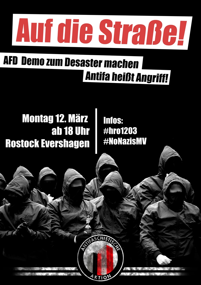 [Original erschienen unter https://de.indymedia.org/node/18739] PEGIDA und die AfD – es wächst nun in Mecklenburg Vorpommern also auch ganz offiziell zusammen, was schon lange zusammen gehört. Faschismus, Rassismus, Arbeiterfeindlichkeit, Homophobie und Sexismus bilden die Säulen ihrer politischen Ideologie. Während in den letzten Jahren wöchentliche „PEGIDA“-Veranstaltungen in anderen Städten fast normal geworden sind, gelang eine derartige regelmäßige Veranstaltung („ROGIDA“) in Rostock 2015 nicht. Zu groß und zu verschieden waren die Gegenproteste und militanten Aktionen. Seit dem gab es zwar zwei vereinzelte rassistische Aufmärsche von der AfD – eine Pegida blieb jedoch aus. Nun versuchen PEGIDA-Organisator*innen und AfD als „rechte Front“ erneut mit Demonstrationen in Rostock Fuß zu fassen. Dies gilt es sofort und mit allen Mitteln zu verhindern!
