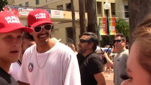 On the 23ed of July, Charlie Kirk’s Turning Point USA and the groyper-associated “Student Action Summit” held a convention at the Tampa, FL convention center. Furious pro-choice protesters descended on the event and managed to take the steps of the Convention Center itself. MAGAts countered by pushing into and harassing the protest from behind.
