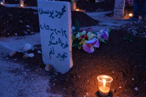 Nach einer Schweigeminute wurden Blumen für die Märtyrer*innen der Revolution niedergelegt und Kerzen an den Gräbern der gefallenen kurdischen Kämpfer*innen angezündet.