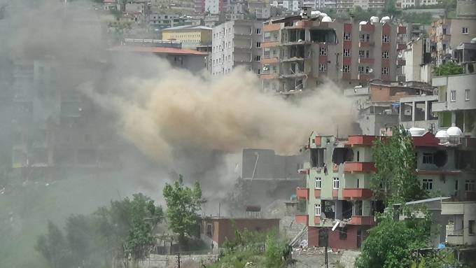 Bakur/Nordkurdistan – Seit 70 Tagen ist Şirnex (Şırnak) eine von der türkischen Armee umstellte und belagerte Stadt. Allein gestern wurden die Stadtteile Bahçelievler und Yeni mehr als 12 Stunden lang pausenlos mit Granaten beschossen. Durch den Beschuss sind mittlerweile fast alle Gebäude beschädigt, teils völlig zerstört worden. Auf höheren Gebäuden der umliegenden Viertel hat der türkische Staat Scharfschützen positioniert,die auf die Stadtteile Bahçelievler und Yeni schießen. In den Stadtteilen İsmetpaşa, Cumhuriyet und Dicle werden weiter diverse Häuser und Gebäude niedergerissen. In den Abendstunden ist die türkische Armee mit Panzern in die Stadt eingedrungen und beschoss zahlreiche Gebäude der Stadtteile Gazipaşa, İsmetpaşa, Aydınlıkevler, Tekser und Vakıfkent. Auch Gebäude des Stadtteils Yeni wurden beschossen. Im Stadtteil Yeni steckte die türkische Armee Häuser in Brand. Die Brände griffen teils auf Nachbarhäuser über. Weitere Gebäude wurden von der türkischen Armee mit Sprengsätzen zerstört. Heute waren im Stadtteil Bahçelievler vereinzelt Gefechte zu verzeichnen.