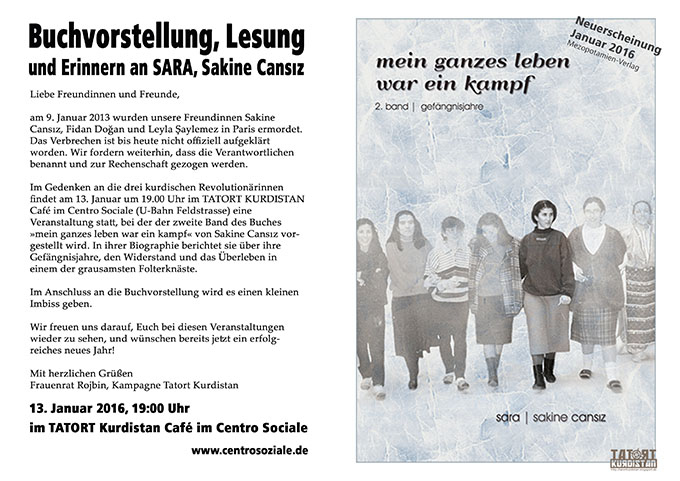Wir gedenken Sakine Cansız, Fidan Doğan und Leyla Söylemez.
