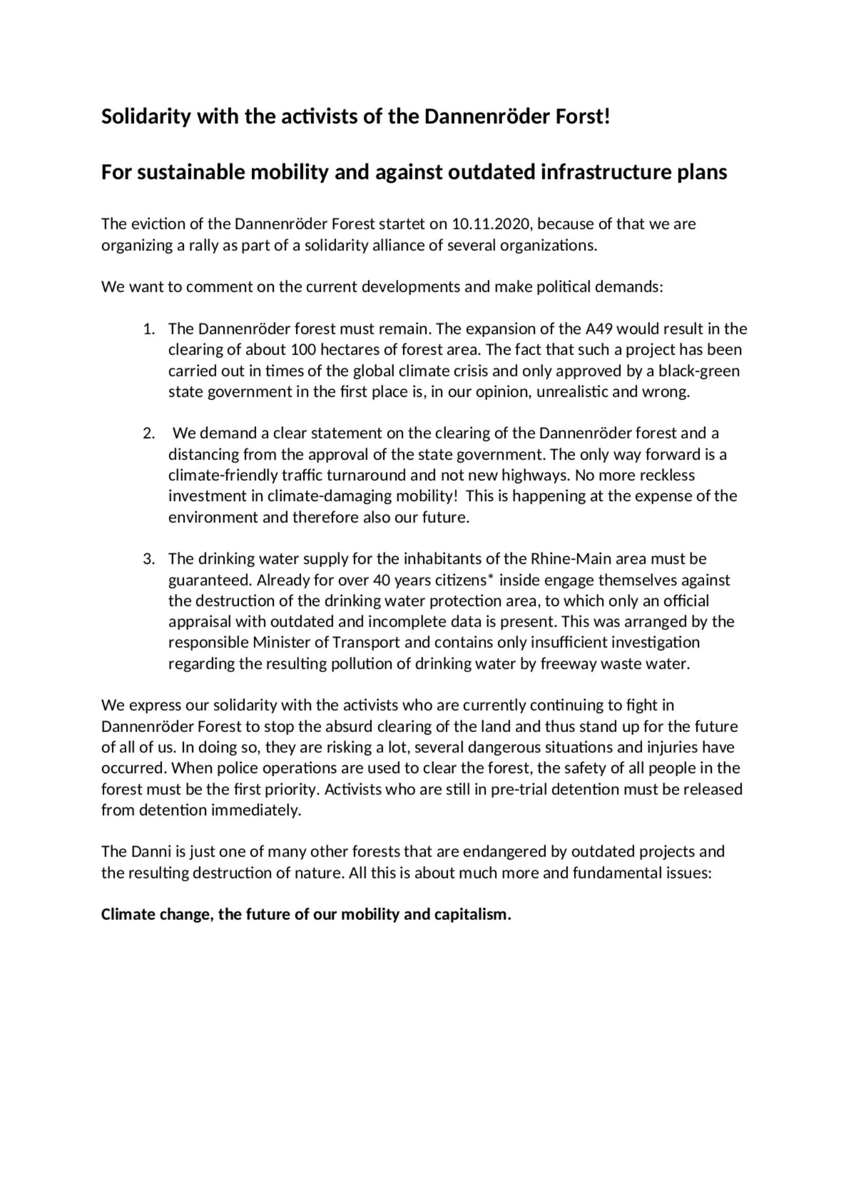 This Wednesday we are organizing a rally together with the Green Youth, the Left Party and Young and Queer to show solidarity with the activists in and around the Dannenröder Forest.