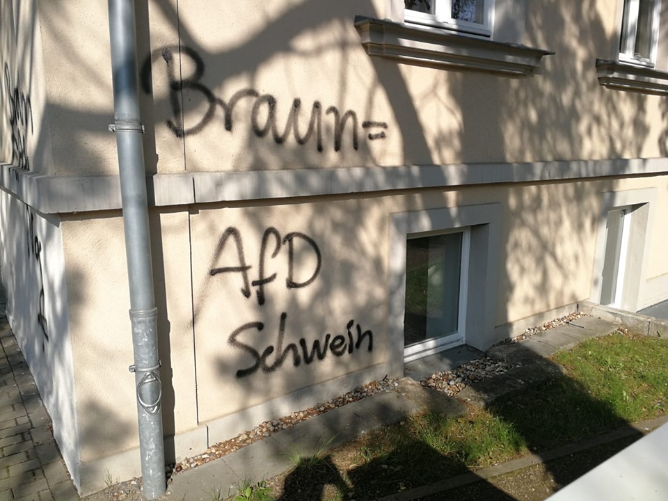 Unbekannte haben in Dresden das Haus beschmiert, in dem Michael Kater wohnt. Kater ist in Leuben in den Stadtbezirksbeirat gewählt worden. An der Fassade stand am Wochenende: „Vorsicht Nazi – Kater = AfD – Kater = Nazi“.