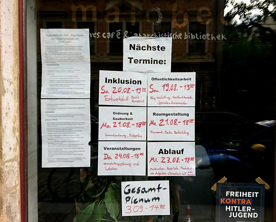 Am 03.09.2017 um 14:00 Uhr findet im Malobeo das nächste Gesamtplenum aller AGs und Einzelpersonen statt. Dort soll unter Anderem entschieden werden, ob, wann und unter welchen Umständen der reguläre Betrieb des Ladens wieder aufgenommen werden kann. Dazu wurde beim letzten Gesamtplenum festgestellt, dass es eines verbindlichen Basiskonsenses bedarf,...