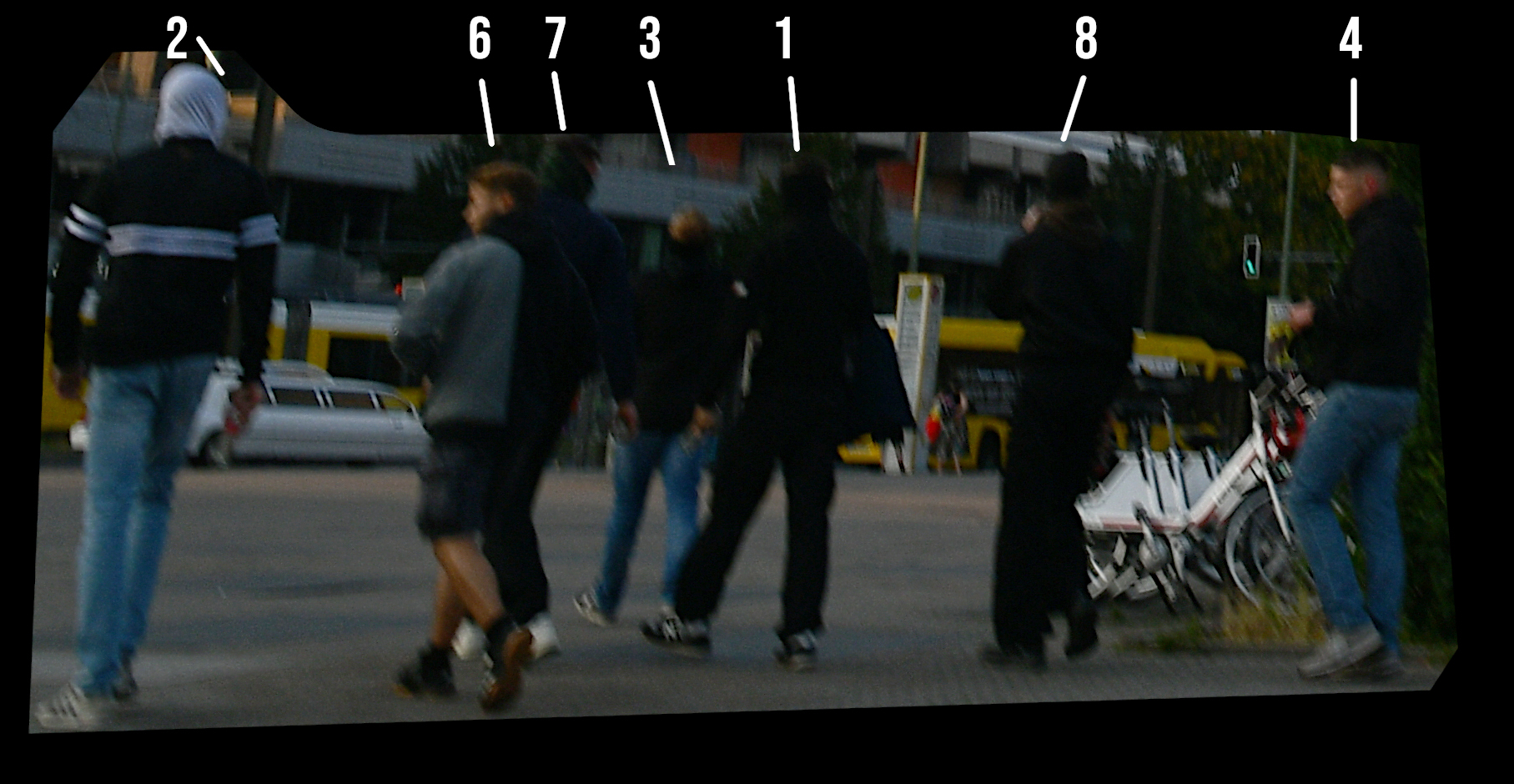 Am 22.7. versuchten Neonazis vom III. Weg Teilnehmenden vom CSD bei der Abreise in Berlin-Mitte aufzulauern. Unter der gewaltbereiten Gruppe befanden sich Erik Storch (1), Luca Böttcher (2) und Franz-Richard Schrandt (7). Neben der, teilweise mit Glasflaschen bewaffneten, Kerngruppe gab es mindestens zwei abgesetzt laufende Späher, die die Aktion absichern sollten (unter anderen Nummer 5).