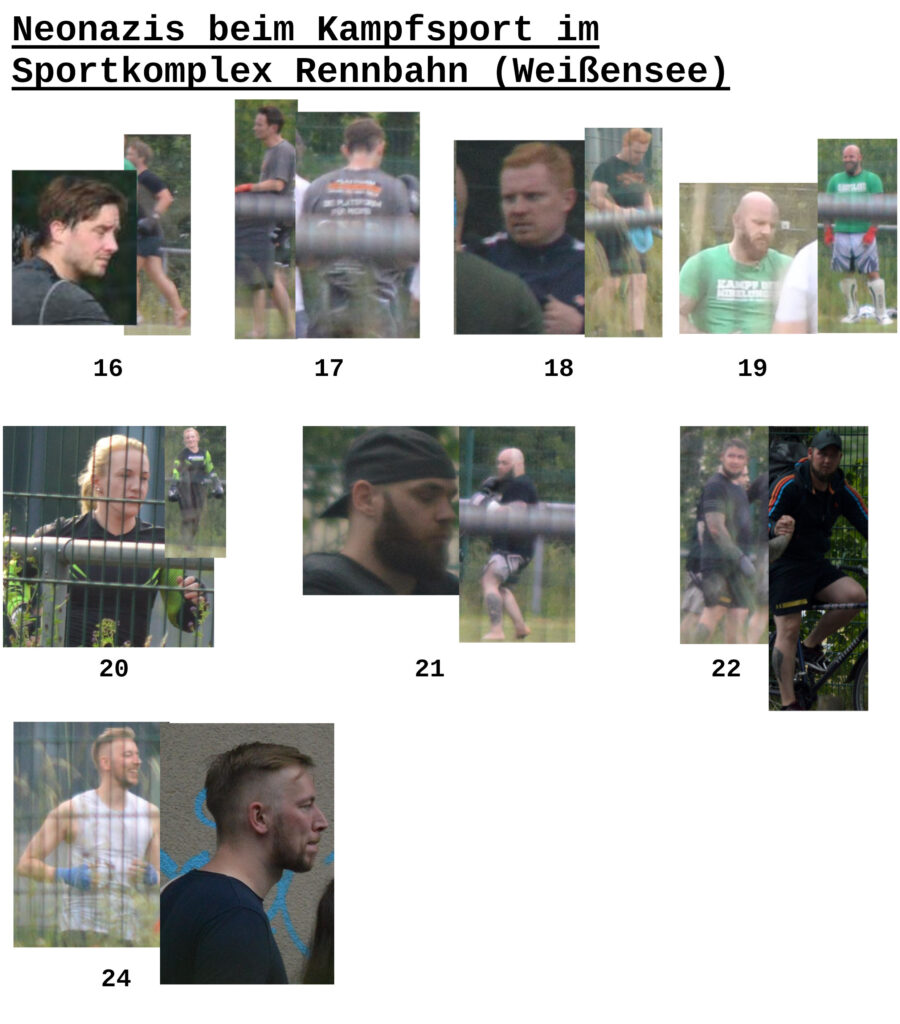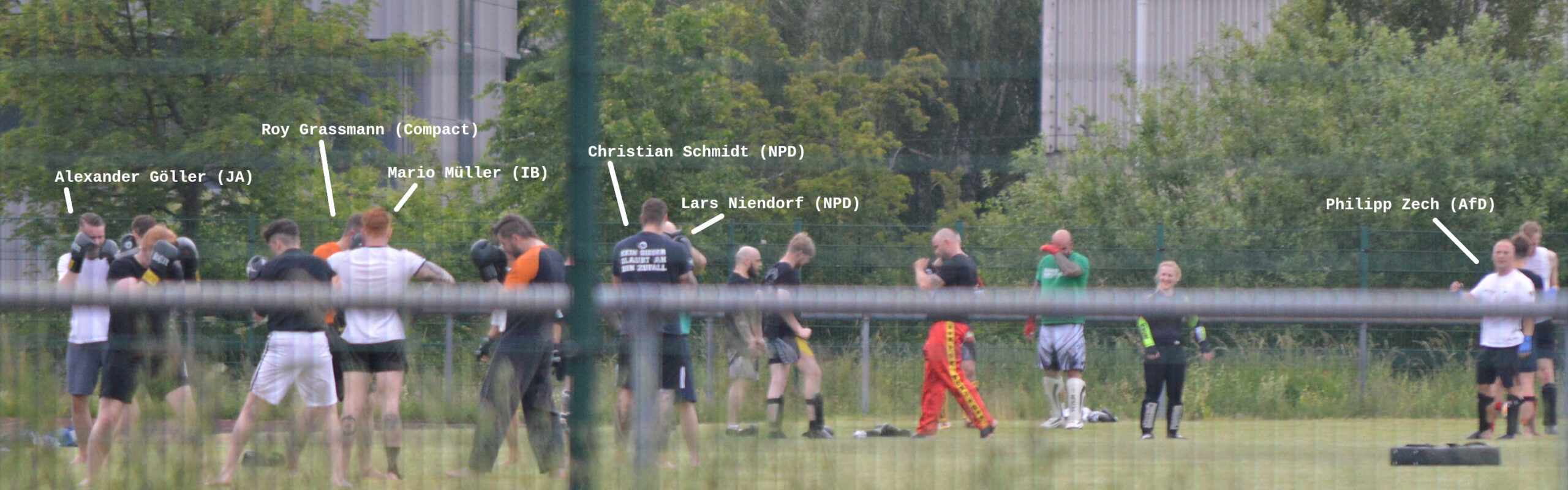 An den Trainings nahmen in wechselnder Zusammensetzung regelmäßig zehn bis zwanzig Leute teil, von denen außer den namentlich genannten Nazis, viele auch Shirts von “Greifvogel Wear” oder “Kampf der Nibelungen” trugen.