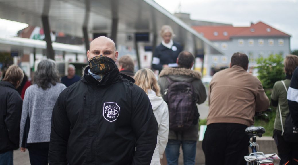 Ralf Jaskloh fällt schon seit Längerem durch sein aggressives Verhalten auf. Schon vor einigen Jahren attakierte er junge Aktivist*innen im Gegenprotest mit einer Metallstange. Mittlerweile zeigt sich seine rechte Gesinnung auch durch Aufkleber und Sprüche immer deutlicher.